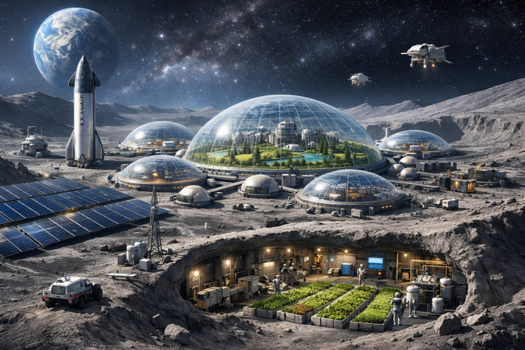 स्पेसएक्सको अवधारणात्मक डिजाइनअनुसार चन्द्रमामा गुम्बज आकारका आवास निर्माण गरिनेछ भने ऊर्जा आपूर्तिका लागि सौर्य प्यानल प्रयोग गरिनेछ। निर्माण कार्यमा चन्द्रमाको माटो (रेजोलिथ) प्रयोग गरी इँटा तथा संरचना तयार गरिने योजना छ। त्यहाँ पानी र अक्सिजन उत्पादन केन्द्र स्थापना गरिनेछ भने दीर्घकालमा खाद्य उत्पादन प्रणालीसमेत विकास गरिने बताइएको छ।