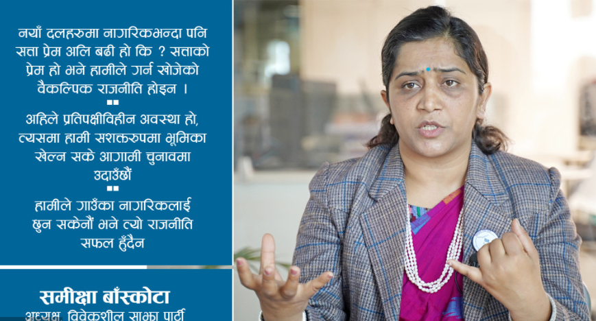 शनिबार दुईदिने महाधिवेशन सम्पन्न गरेको सो दलको अध्यक्षमा समीक्षा बाँस्कोटा र महासचिवमा रन्जु दर्शना सर्वसम्मत रुपमा चयन भए । विवेकशील साझाको कार्यदिशा र चुनौतीबारे नवनिर्वाचित अध्यक्ष बाँस्कोटासँग इकान्तिपुरका मणि दाहालले गरेको कुराकानी :