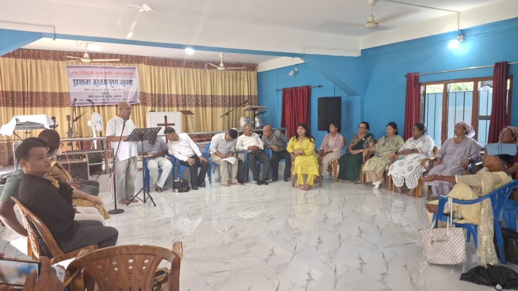१८ मण्डलीका पास्टर, अगुवा तथा अन्य विश्वासीहरूको सहभागिता रहेको साधारणसभा जोइ फेलोसिप बप्तिस मण्डली, मेचीनगर–६ बर्मेलीटोलमा सम्पन्न भएको हो ।
