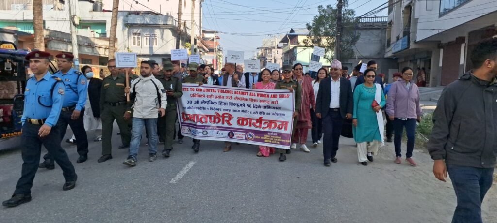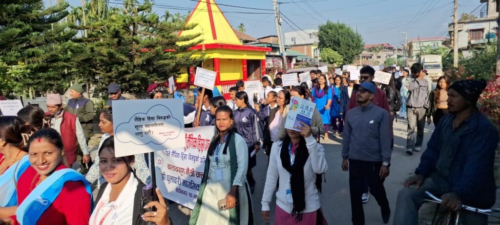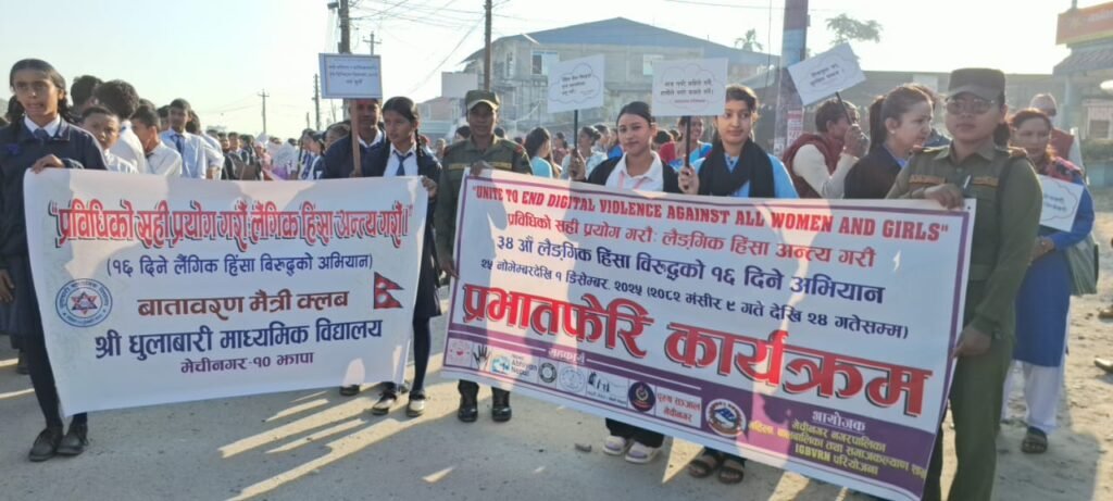 लैङ्गिक हिंसाविरुद्धको ३४औँ ‘१६ दिने अभियान’ आजदेखि देशभर शुरु भएको छ । मेचीनगर नगरपालिका–११ धुलाबारीमा यस अभियानको सुरुआत प्रभातफेरिद्वारा गरिएको हो ।
